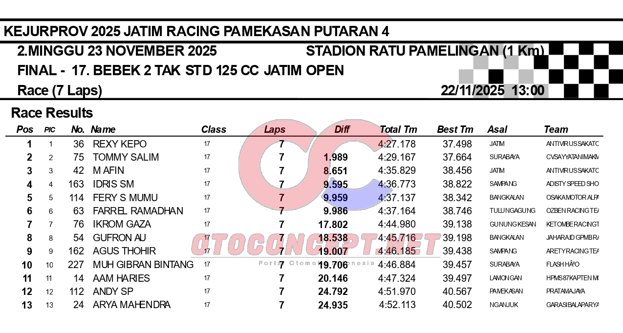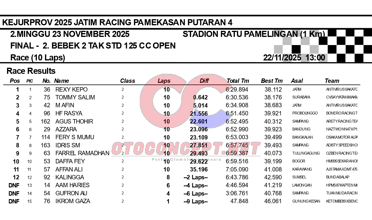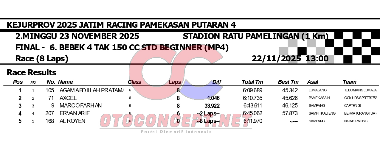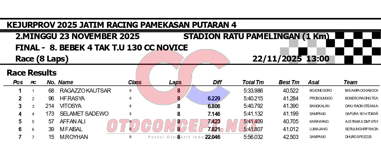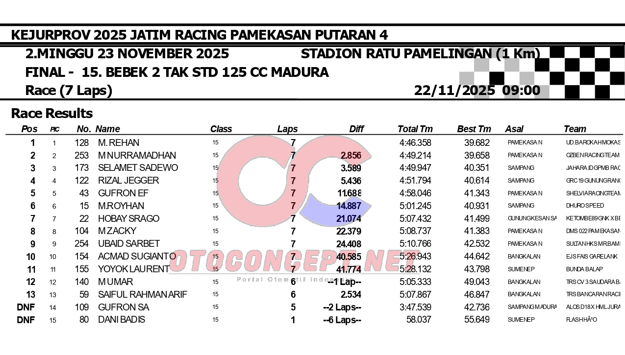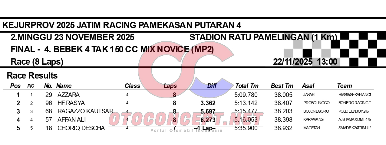 HeadlineRoad RaceHasil Kejurprov 2025 Jatim Racing Pamekasan Admin2 hours ago01 mins OtoConcept.net – Berikut hasil Kejurprov 2025 Jatim Racing yang berlangsung di sirkuit non permanen Stadion Ratu Pamelingan Pamekasan, Madura (23/11). ATH Post navigation Previous: Hasil Superchallenge Superprix Boyolali Leave a Reply Cancel replyYour email address will not be published. Required fields are marked *Comment * Name * Email * Website Save my name, email, and website in this browser for the next time I comment.