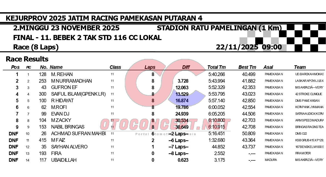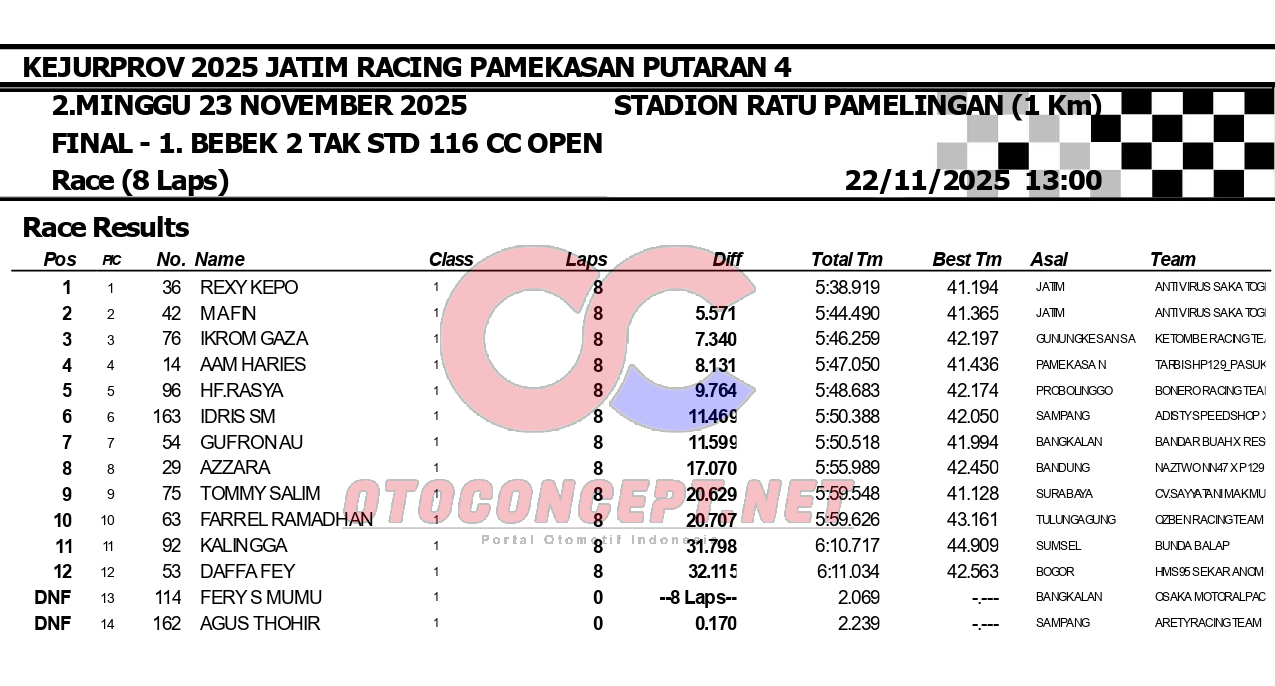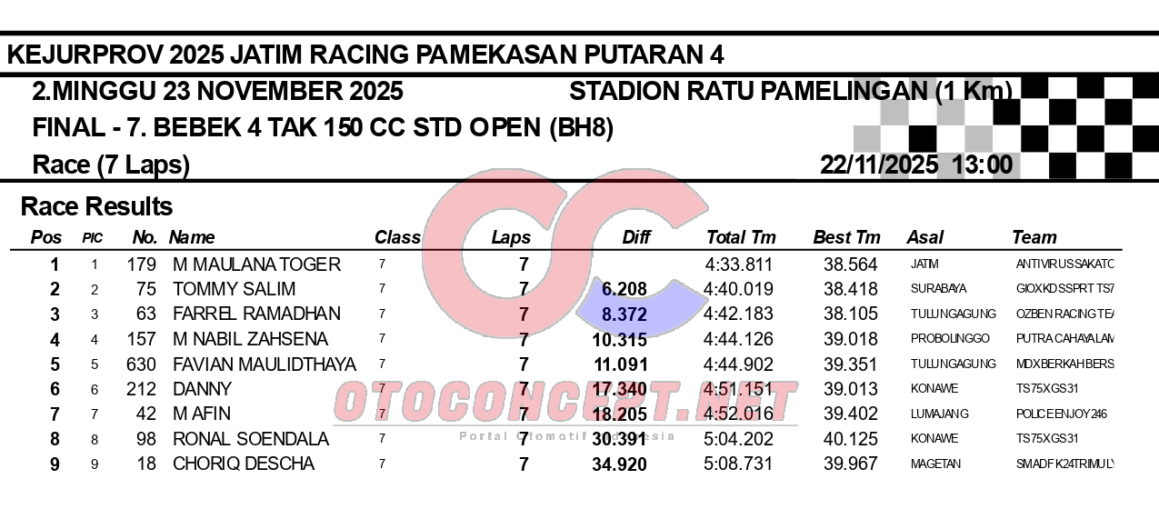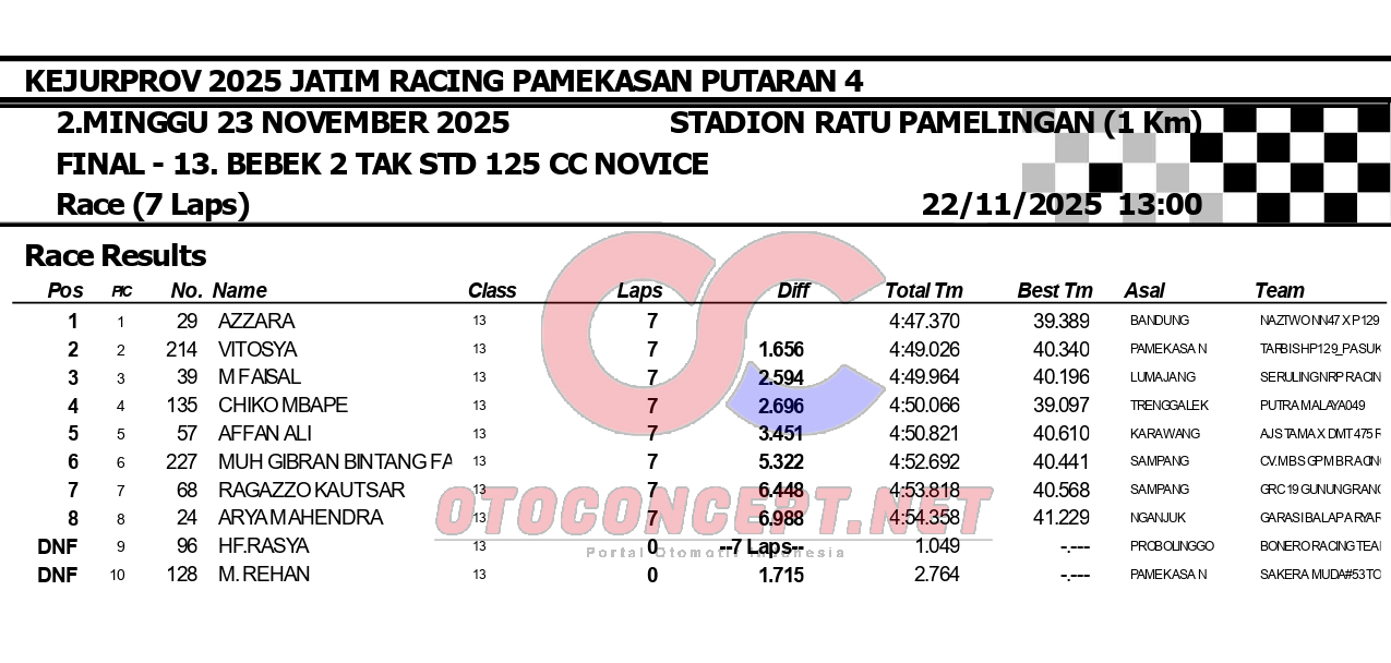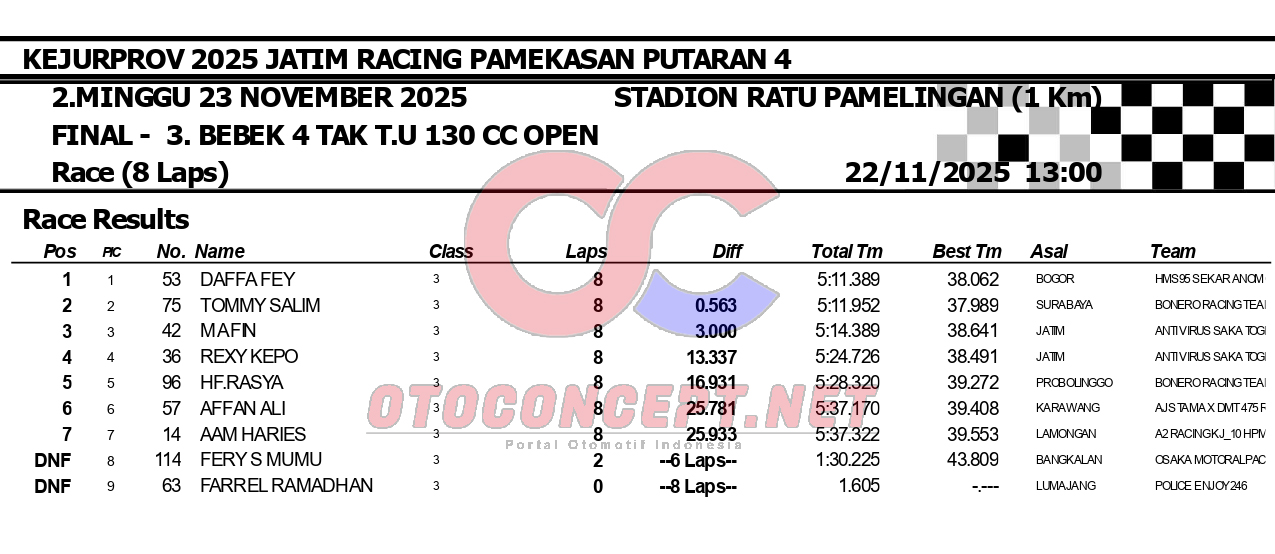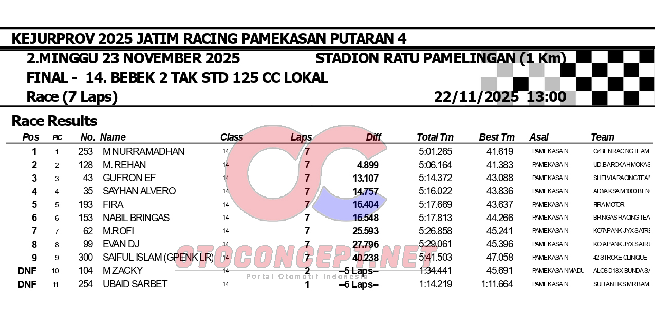 HeadlineRoad RaceHasil Kejurprov 2025 Jatim Racing Pamekasan Admin2 hours ago01 mins OtoConcept.net – Berikut hasil Kejurprov 2025 Jatim Racing yang berlangsung di sirkuit non permanen Stadion Ratu Pamelingan Pamekasan, Madura (23/11). ATH Post navigation Previous: Hasil Superchallenge Superprix Boyolali Leave a Reply Cancel replyYour email address will not be published. Required fields are marked *Comment * Name * Email * Website Save my name, email, and website in this browser for the next time I comment.