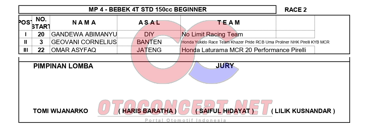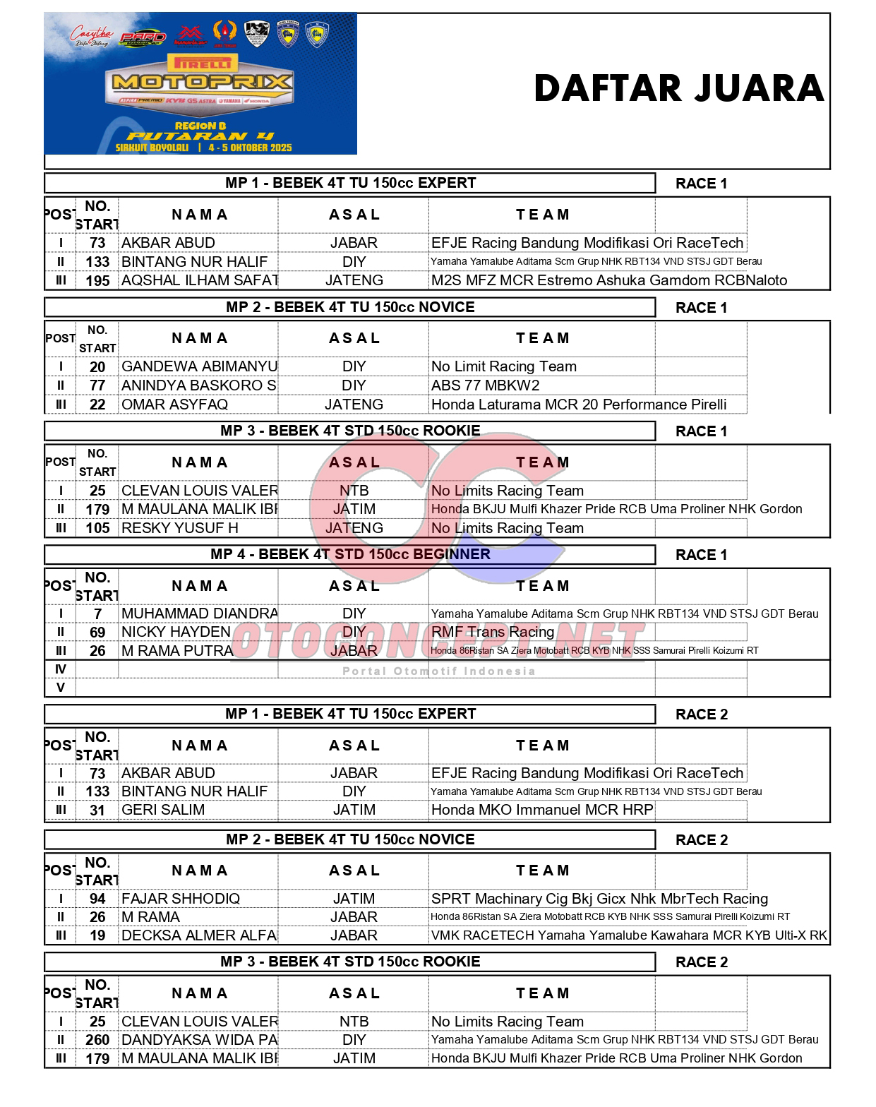 HeadlineRoad RaceHasil Motorprix Region B Boyolali Admin3 hours ago01 mins OtoConcept.net – Berikut hasil juara Kejurnas Motorprix region B seri 4 yang berlangsung di sirkuit permanen Boyolali, Jawa Tengah (4-5/10). ATH Post navigation Previous: Tembus Top 3 Klasemen, Pembalap Astra Honda Tampil Kencang di IATC MotegiNext: Honda Tri M Berhasil Pertahankan Juara Rookie Region A Leave a Reply Cancel replyYour email address will not be published. Required fields are marked *Comment * Name * Email * Website Save my name, email, and website in this browser for the next time I comment.