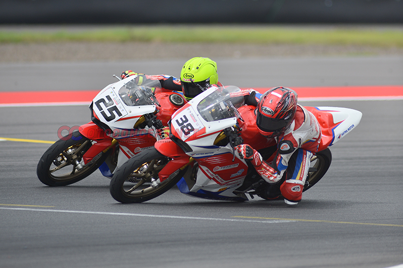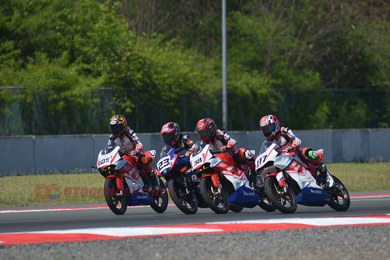 Meski begitu, tidak membuat patah semangat kedua pembalap ART Yogyakarta tersebut. Buktinya hanya berjarak 1 lap setelah start dilepas keduanya langsung berada di rombongan depan.